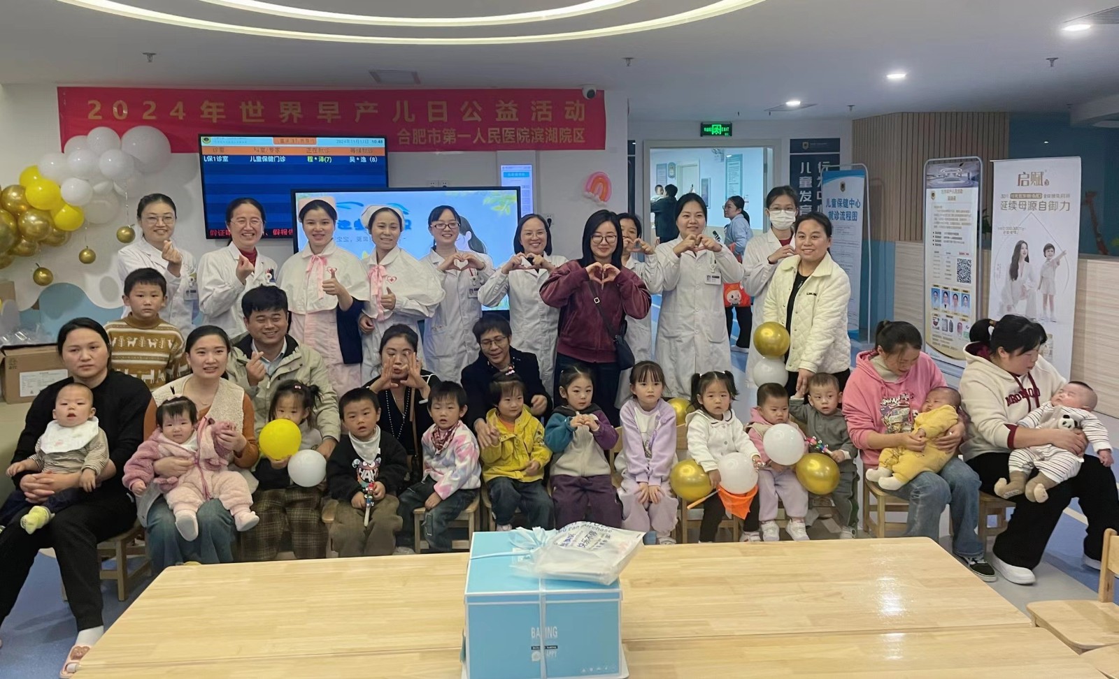 为了唤起社会对早产问题的关注,并为早产宝宝及其家庭提供一个交流与分享的平台,11月17日上午,合肥市第一人民医院滨湖院区儿保科联合新生儿科在门诊2楼儿保科举办《“早产宝宝更需要肌肤接触”欢迎宝宝回家》2024年世界早产儿日主题活动。黄金华主任、于梅主任、许平主任、胡玉萍护士长等医务人员以及15名早产儿父母和可爱的孩子们出席了本次活动。
