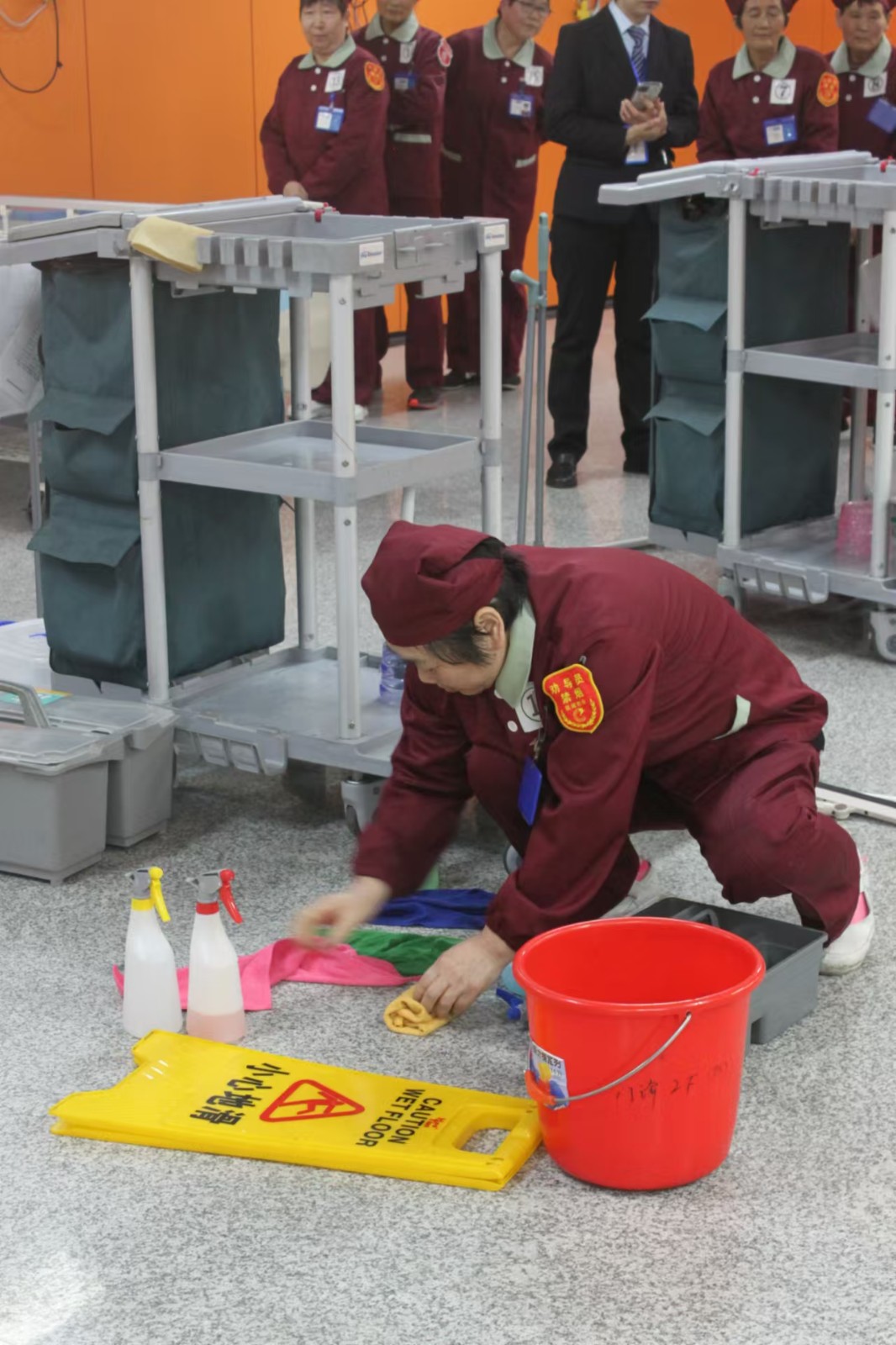 比赛现场气氛紧张而激烈,保洁员们展示了他们在各自岗位上的精湛技艺和专业素养;经过激烈角逐,大赛最终圆满结束,员工们通过这次比赛不仅提升了自己的专业技能,更加深了对服务行业精神的理解。