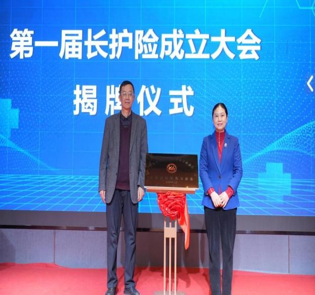 安徽省医疗保障局价采处一级调研员万勇和合肥市第一人民医院副院长潘爱红,共同为长护险专委会成立揭牌。