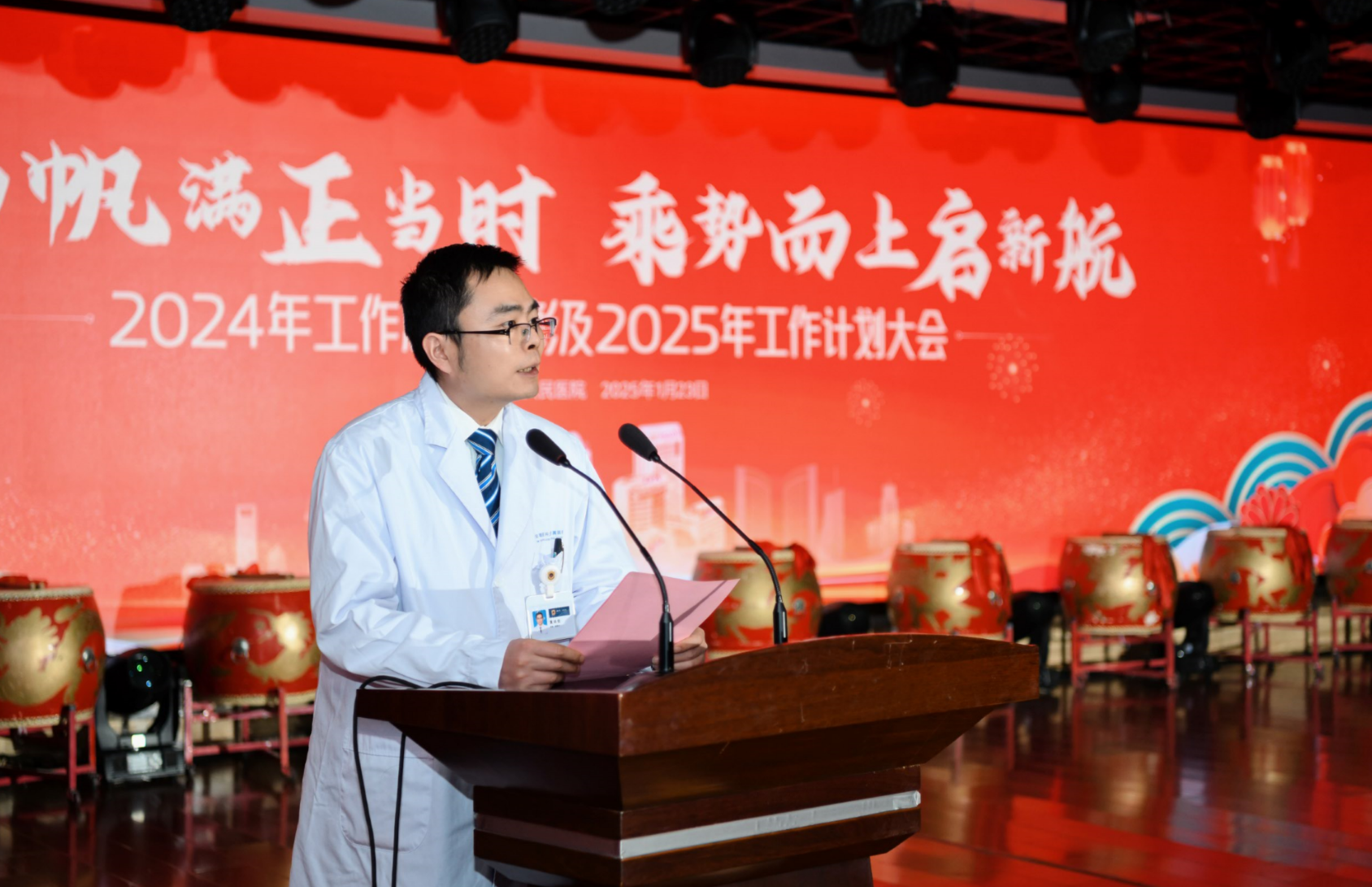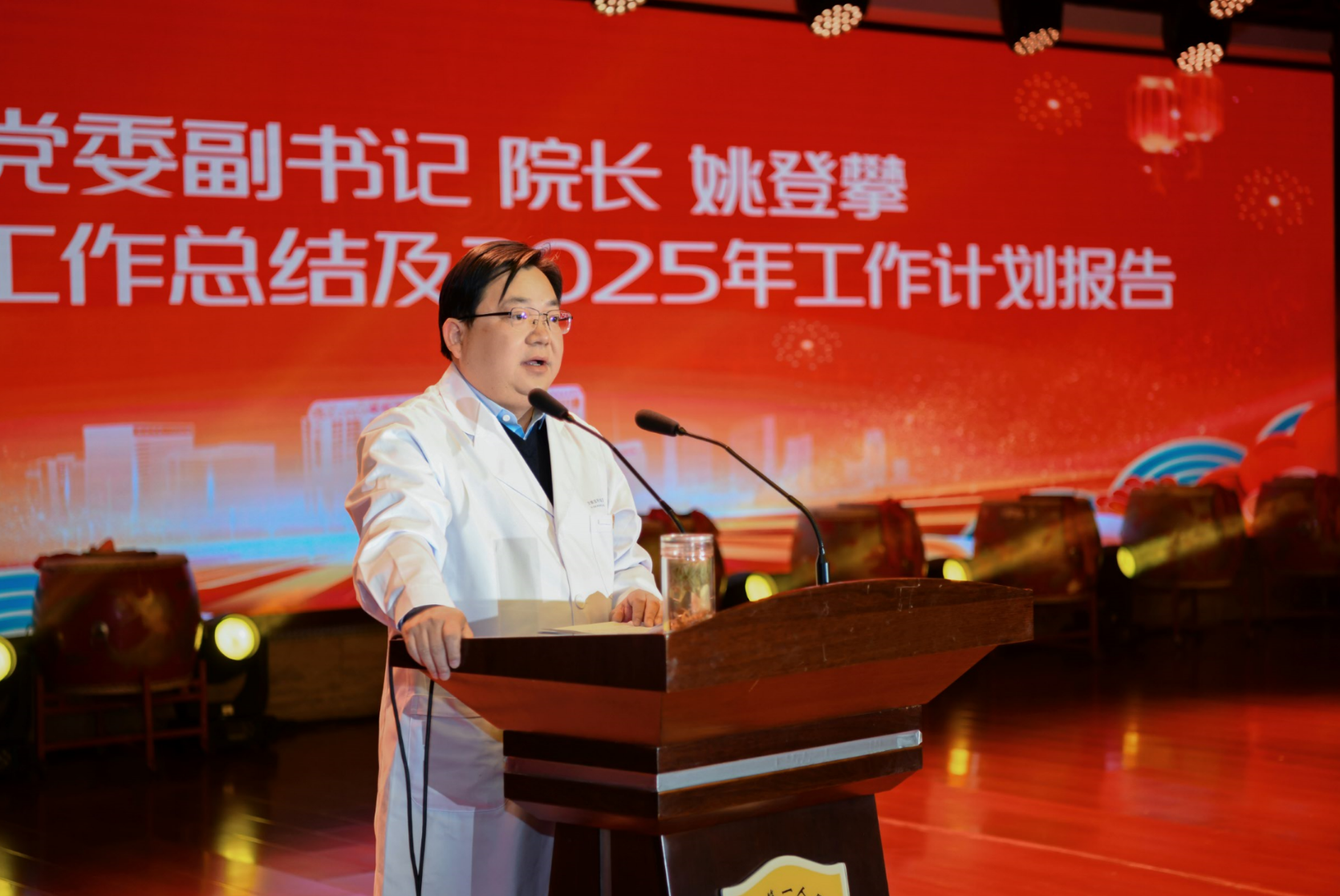 院长姚登攀从党建引领、人才学科发展、质量与安全、科研教学、医疗服务、运营保障六个方面全面回顾了2024年工作,提出2025年医院发展的主要预期目标,并就全年重点工作进行部署。