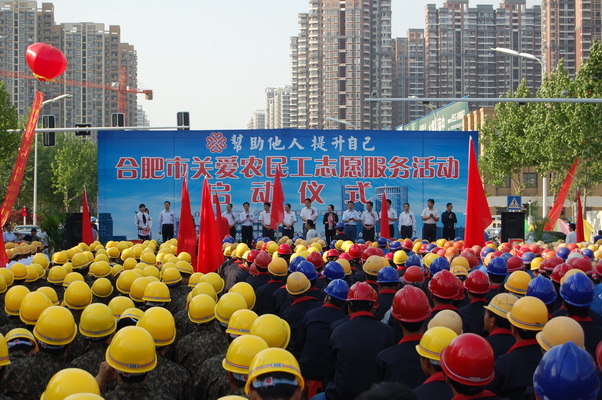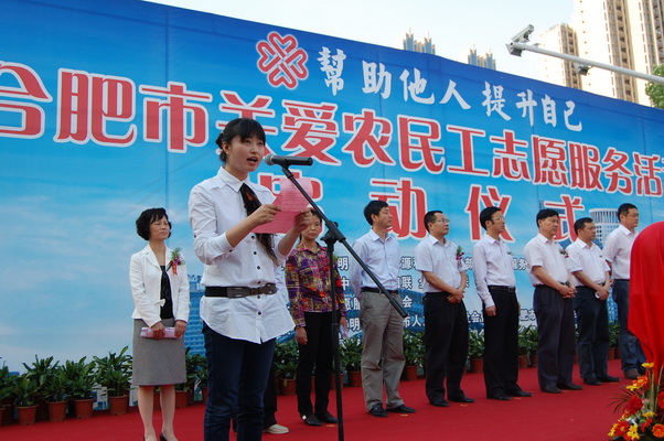 来自合肥市第一人民医院的志愿者周婕向全社会发出了关爱农民工志愿服务倡议书,倡议通过开展义务咨询、免费培训、医疗义诊、学业辅导、爱心捐赠等活动,切实维护好农民工的合法权益,让农民工生活得幸福快乐。