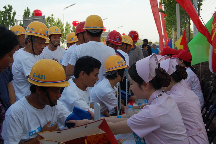 为有效贯彻落实好中央文明办等部门的工作部署,切实做好关爱农民工的志愿服务工作,5月13日下午,以“帮助他人提升自己”为主题的合肥市关爱农民工志愿者服务活动在滨湖新区正式启动。P站 团委积极响应,组织滨湖医院皮肤科、骨科、内分泌科、眼科、呼吸内科、风湿科、血肿科、心血管科、外科、急诊科、医技科室的10多位专家组成义诊小分队现场为农民工义诊、免费测量血压并提供健康咨询服务,发放大量健康宣传资料。