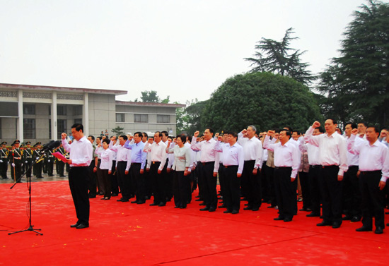 上午,省暨合肥市“百万党员缅怀先烈、重温入党誓词活动”在合肥市大蜀山烈士陵园隆重举行。省委书记张宝顺领誓并发表重要讲话。省长王三运主持活动。省党政军领导段敦厚、余欣荣、臧世凯、詹夏来、王秀芳、任海深、胡连松、朱先发、郭万清、黄海嵩、唐承沛、倪发科、沈素琍、李宏塔、向孝民、周溯、罗忠安及省政协秘书长王启敏出席活动。