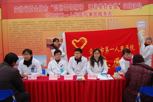 组织了阵容庞大的义诊小分队,现场为广大市民提供义诊服务。虽然当天寒风瑟瑟,天空还飘着小雨,和平广场上却熙熙攘攘。参加义诊的医护人员也忘掉了寒冷和饥饿,耐心接待每一位应诊者,对他们进行精心的检查和诊断,用实际行动倡导文明新风,服务人民群众,把雷锋精神发扬光大。