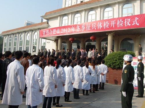 昨天是2012年冬季征兵正式启动的第一天。首批走进体检站的是来自包河区人武部的200多名应征男青年。据介绍,在接下来的十几天时间内,市第一人民医院体保中心将承担合肥包河区、庐阳区和蜀山区三个区的应征青年体检任务。包河区的征兵体检工作被选定为第四次全国应征青年体格状况调查抽样单位,体检抽样项目达到400多项。