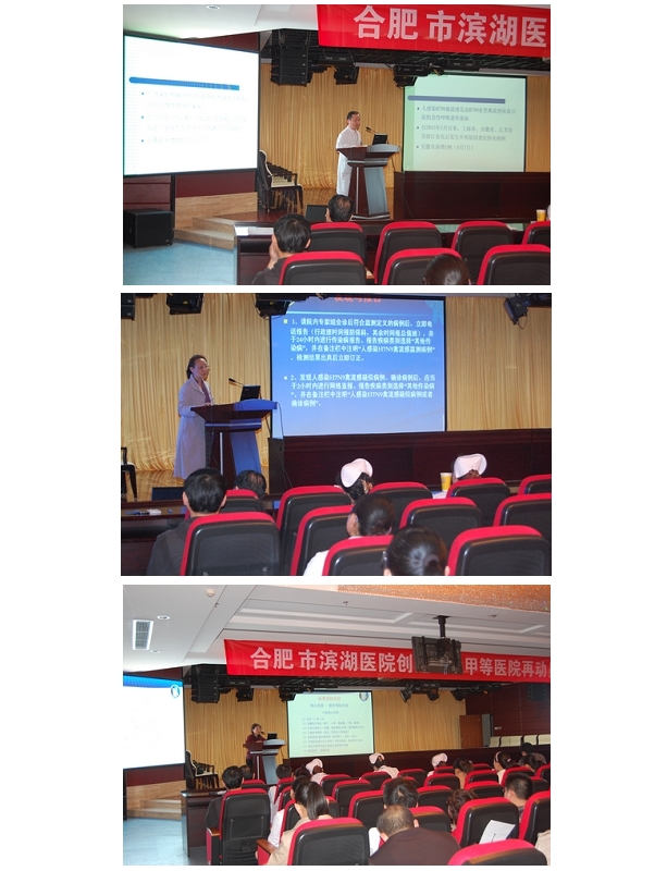 人感染H7N9禽流感的诊疗救治工作,提高防控能力,由医务部组织,在滨湖医院医技楼16楼会议中心举办了人感染H7N9禽流感防治全员培训。吴冬雷副院长、科主任、护士长、住院总和不值班的医护人员等均参加了培训,培训由医务部马克副部长主持。
