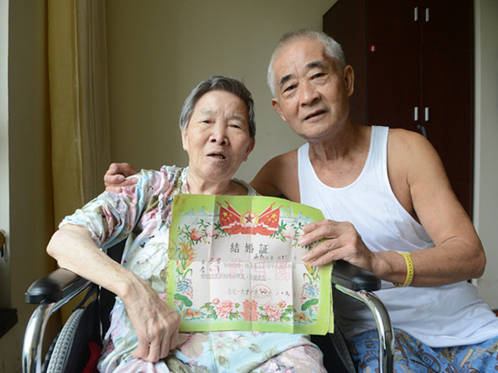 年“金婚”纪念日,而他的老伴儿去年起就住进了滨湖医院老年科,他希望能在病房里完成老伴儿的心愿。为了这一组特别的婚纱照,老年科辗转通过报社找到一家爱心影楼,为这对老人圆了