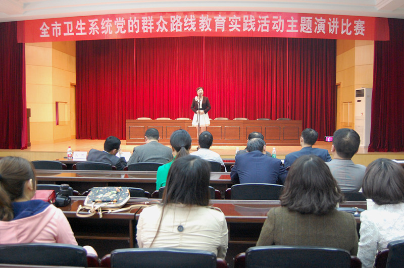 4 月 22 日 下午,全市卫生系统党的群众路线教育实践活动主题演讲比赛在合肥市四院举行,来自全市各家医疗卫生单位共 15 名选手参加比赛。 选手们紧扣党的群众路线教育实践活动主题,结合本单位的实际工作和对教育实践活动的学习认识,讲述了一个个奋斗在医疗卫生战线上,无私奉献的感人事迹,充分展示了党员干部在自己平凡的工作岗位上忠于党、忠于人民的精神风貌。比赛现场精彩纷呈,掌声不断。与会人员深受教育和感染,经过激烈角逐,P站 选手陶文娟力压群雄,摘得本次大赛桂冠。