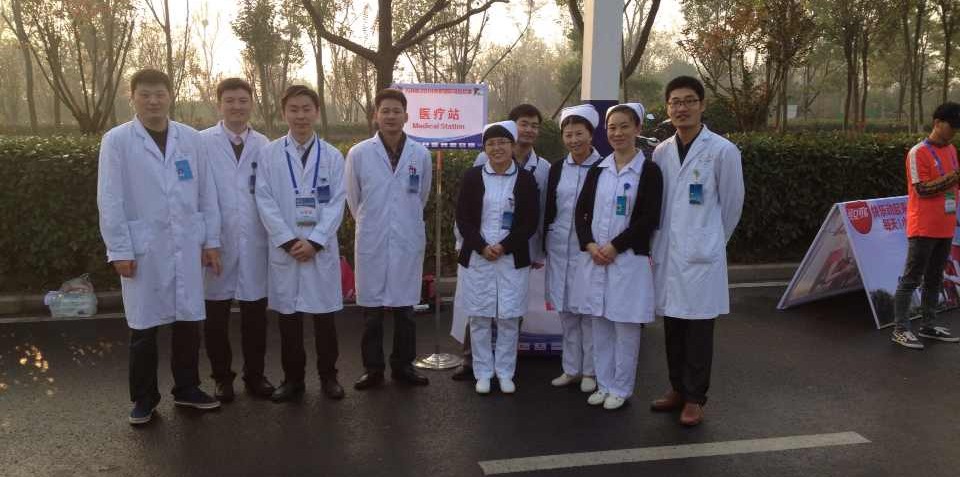 为了做好此次比赛的医疗保障工作,根据大赛组委会和市卫生局安排,医院领导高度重视,成立医疗保障工作领导小组,安排医务部专门协调各方面资源,确保人员、急救药品器械到位。合肥市第一人民医院本部负责主会场医疗服务中心、1-3医疗服务点的医疗保障工作,主会场安排6名医生、8名护士,每个点安排1名医生、2名护士。滨湖医院负责4-6医疗服务点的医疗保障工作,每个点安排1名医生、2名护士,同时滨湖医院为定点救治医院,开辟绿色通道,比赛当日抢救小组在急诊科待命。市一院西区在运动员入驻的宾馆设置临时医务室,负责在宾馆住宿期间的参赛选手和国内外来宾的医疗保健和医疗救护工作。