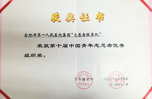 从数千支志愿者队伍中脱颖而出,获得“第十届中国青年志愿者优秀组织奖”光荣称号。
