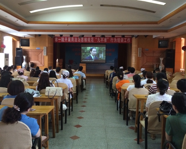 为认真贯彻落实2015年度全省卫生计生系统纪检监察工作会议精神,运用法治思维规范“九不准”行为,进一步加强行风建设,不断提高群众对医疗服务的满意度。市一院于7月至9月,对全院职工开展用法治思维规范“九不准”行为培训活动,培训方式主要通过播放教育片和考试测评方式进行。通过培训工作使大家深刻认识开展“九不准”活动的重要意义,增强做好医疗卫生工作的责任感和紧迫感。