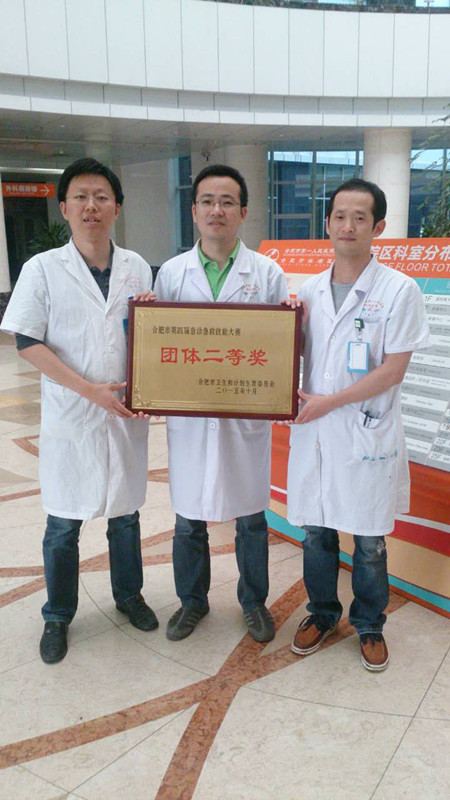 项比赛。经过两天紧张的比赛及省级专家的裁判,本部郝玉瑜医生获得急诊急救理论比赛第一名,于立凡医生获得气管插管并列第一名,滨湖医院获得团体二等奖,本部获得团体三等奖,郝玉瑜、丁斌、聂开政三位医生个人总成绩在
