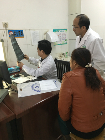 图:关节骨科主任黄彰在小庙镇卫生院坐诊