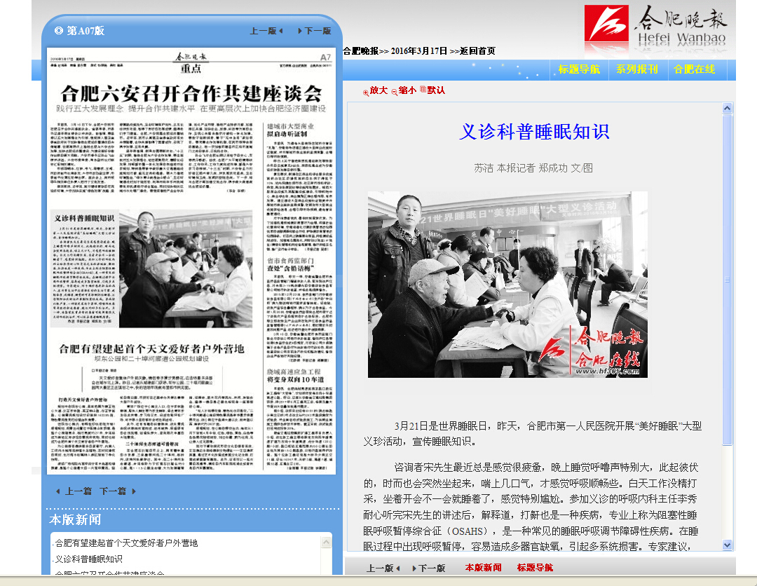 是世界睡眠日,上周三合肥市第一人民医院开展“美好睡眠”大型义珍活动,宣传睡眠知识。