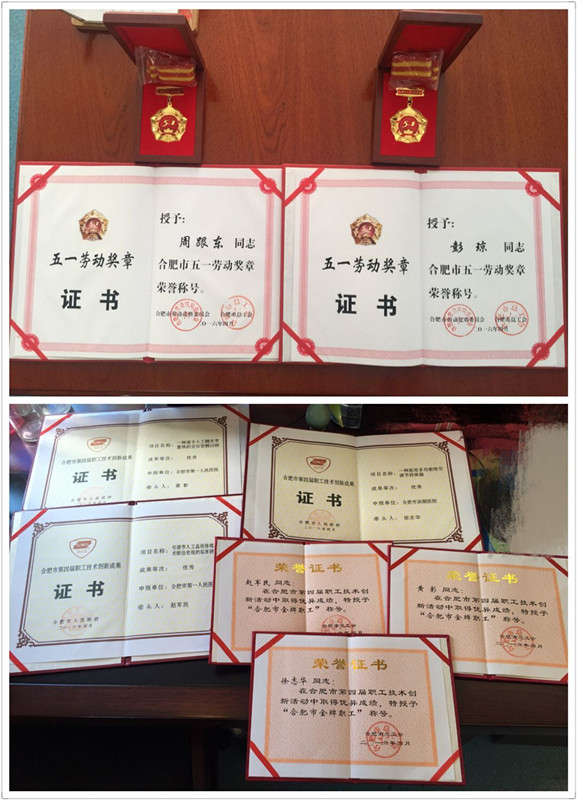 为了深入贯彻落实党的十八大和十八届三中、四中、五中全会精神,激发一线职工的创新热情。近日,合肥市劳动竞赛委员会以及合肥市总工会为鼓励先进,弘扬典型授予