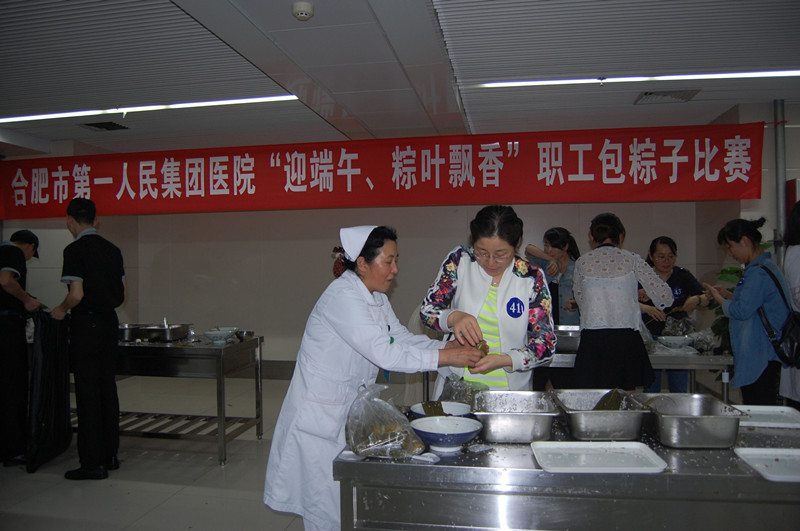 广大医务工作者在滨湖医院食堂,欢聚一堂,以包粽子比赛的方式重温传统文化,共祝端午佳节。