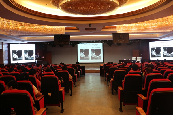 这次会议邀请了著名的美国密西根大学医学中心的李峤教授、美国MD安德森癌症研究中心的兼职、访问教授杨林教授、法国再生医学与功能医学研究中心首席科学家杨光华教授以及其他著名肿瘤免疫学专家、省内肿瘤、放射治疗学、血液病学知名专家教授前来讲学。大会围绕“恶性肿瘤精确治疗下的整合治疗,共筑治疗新理念”为主题,就肿瘤恶性精确治疗计划、各系统肿瘤多学科精确整合治疗策略与免疫治疗研究进展等临床应用进行学术交流与研讨,旨在推动现代肿瘤免疫基础研究与临床应用的转化,促进肿瘤精确整合治疗新理念的发展。来自全省20多家医院及医疗单位60位肿瘤学专家及360余位医护人员参加了本次会议。本次学术会议特别安排了现场提问环节,会场气氛活跃,专家对参会人员的提问进行了详细的解答及指导。