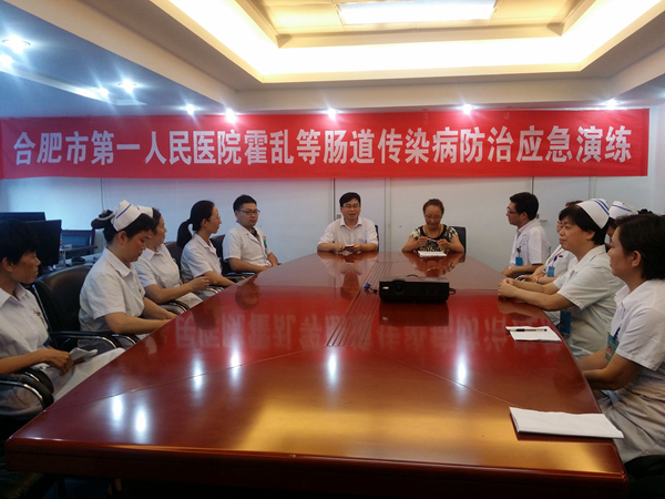 为进一步做好霍乱防治工作,提高各相关部门对霍乱疫情的处置能力,8月11日下午,合肥市第一人民医院开展了霍乱疫情应急演练。此次演练由医务部副部长胡景春任总指挥,防保科、院感科、门诊部、感染科、检验科、急诊科、ICU、消化科等部门参与演练。