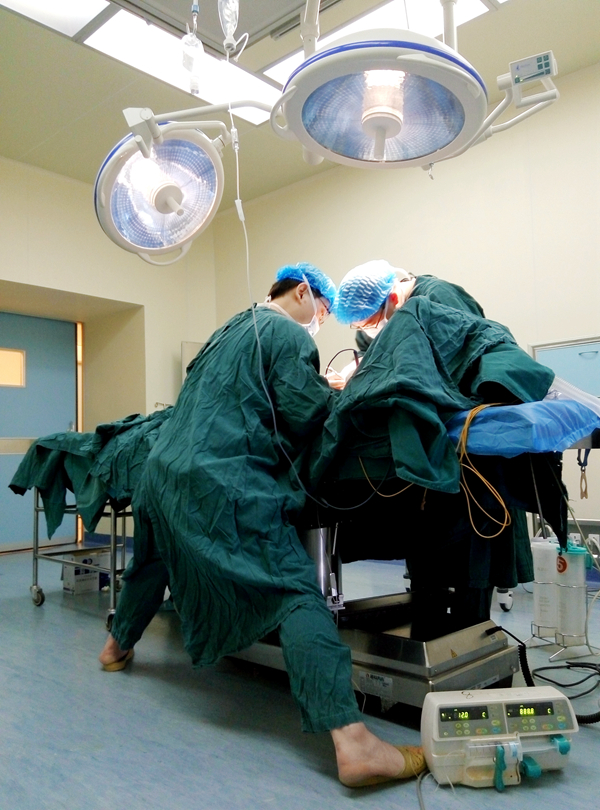 合肥市滨湖医院泌尿外科医生姜瑞,身高近1米8,去年秋天,在给一个4岁小男孩做手术时,为了手术视野更清晰,他采用“大八字”这种特殊的站姿进行手术,一站就是一个多小时。