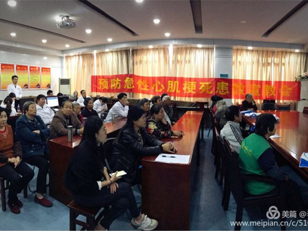 心血管内科专家团队与庐阳区林店街道社区卫生服务中心医护人员合作,对社区居民进行"预防急性心肌梗死知识" 的宣传活动。林店社区卫生服务中心是市一院医联体单位,此次活动目的在于为社区居民如何应对心脏病的突发情况如"胸痛发作"等提供专业团队指导。基层卫生机构是心血管慢病防治的主战场,社区的患者是我们服务的对象。合肥市第一人民医院胸痛中心在创建活动中也希望通过面对面接触的患教活动,帮助社区居民建立预防为主、自我保健的意识,认识到急性心肌梗死的危害性,及时拨打 120可以最大程度的缩短救治时间,才能挽救心肌、挽救生命。患教现场座无虚席,社区居民认真聆听记录,讲课专家针对到场患者的年龄和接受能力,用最形象的比喻,最直观的图片切入主题,让在场的群众更容易接受和理解。