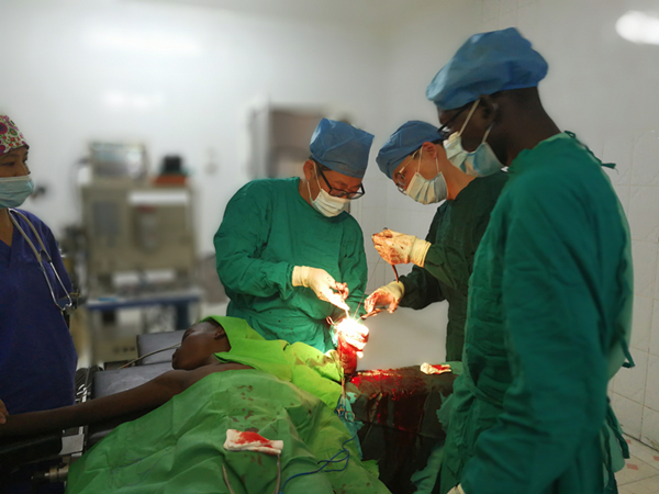 近日,中国第五批援南苏丹医疗队在朱巴当地开展腹股沟疝无张力修补术,用更先进的医疗手段为当地群众去除病痛。