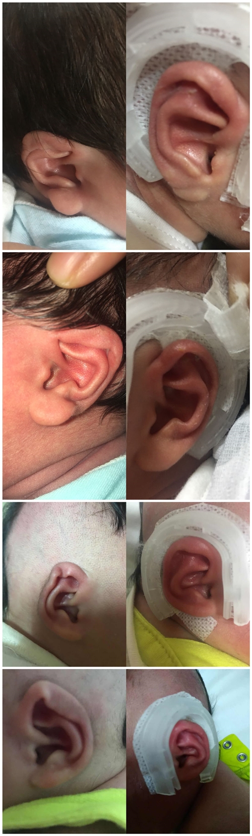 近日,合肥市滨湖医院耳鼻咽喉科成功为两名刚出生不足5天的婴儿置入耳廓矫正器,目前这两名婴儿的耳廓形态畸形症状持续改善,效果较明显。
