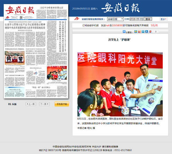 日,在合肥市滨湖医院,眼科医生给滨湖世纪社区孩子们讲解护眼知识。连日来,滨湖医院联合附近中小学为即将开学的学生开展眼部保健讲座,传授护眼要领。