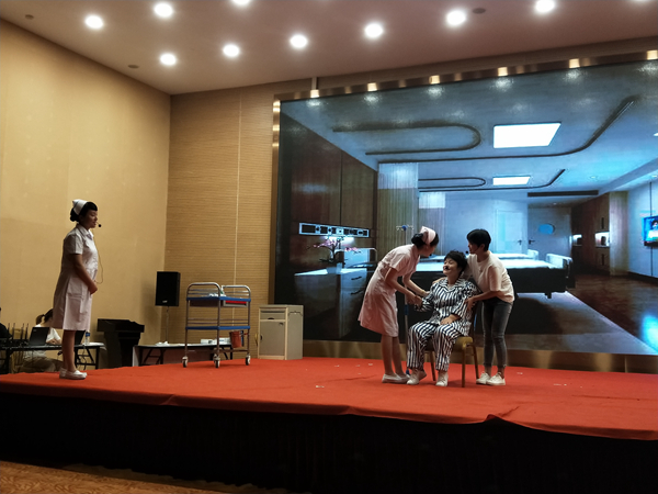 比赛现场气氛热烈,各参赛团队准备充分,大家结合本专业的特点和身边事例,以情景再现方式精心创作编排。合肥市第一人民集团医院选送的作品讲述了护理人员对一例青光眼患者实施身心全面照护,不仅解除了患者躯体疾患还想方设法帮助其解决家庭困难,生动再现了一幕温馨感人的场景。演员们的真情演绎将护理工作的耐心、细心、专业精神表现的恰到好处,将患者的病痛焦躁,家属的担心忧虑模仿的惟妙惟肖,体现出护士良好的沟通技巧,也彰显了护理工作的隐忍和大爱胸怀,赢得了现场观众阵阵掌声。
