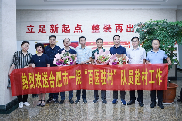 月28日,全省健康脱贫“百医驻村”行动第二批驻村医生动员培训会在肥召开,由合肥市第一人民集团医院选派的老年科副主任医师倪刚、眼科主治医师马应、急诊科主治医师聂开政参会培训。培训结束后,副院长文刚带领医务部、人力资源处、工会、急诊科等相关部门和科室人员为此行的三名驻村医生送行。