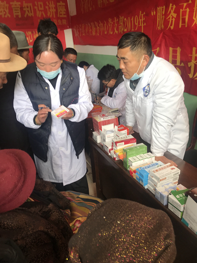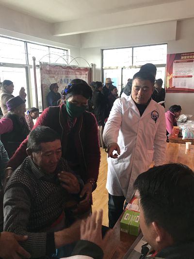 作为援藏工作队的队长,我为队员们分配好各自的工作,大家分头行动起来;队员们有测血压的,有专门记录数据的,有耐心听叙患者用藏语讲述病情的,还有不厌其烦的反复讲解的,患者不停的来到就诊现场,大家完全忘记了疲劳,忘记了饥饿,尽管语言沟通不便,我们在当地医生充当翻译的情况下顺利的完成了3个小时的义诊活动。义诊活动结束时已经是下午两点钟了,这时大家才意识到中午饭还没有吃,尽管如此,我们援藏人员没有一个叫苦叫累,更没有因为饥饿而放下自己的工作去休息的。