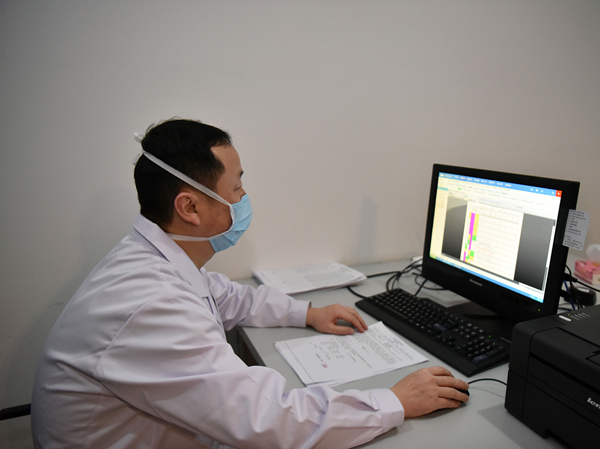 月31日,一名重症患者转到丁震的隔离病区。“当晚,这个患者出现呼衰,这是我压力最大的时候。”丁震所说的这个患者67岁,有比较严重的基础病,通过 CT检查,显示两肺大面积广泛炎症,伴呼吸困难、气促等临床表现,并有呼吸衰竭。“按照诊疗规范,已经达到重症患者标准。”丁震一刻不敢松懈,连着几天晚上就睡在隔离病区的办公室,每天只睡约三小时,时刻关注这名患者病情变化。