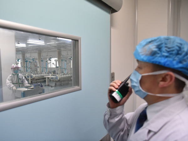 每天早晨,在进入隔离病区查房前,丁震都会做足功课。“在工作区我已经把患者的检查化验结果和CT都看过了,治疗方案我也都跟医生们定好了。”他与患者谈话很少谈论病情,首先问的是心情怎么样。观察到部分患者有情绪上的波动,他会主动进行心理疏导。“第一个出院的病人,只在隔离病区待了一周,一直很乐观。” 在丁震看来,乐观的情绪对病人康复作用很大。