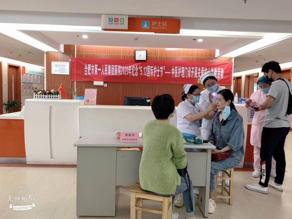 月11日,西区蜀山,中医护理门诊张伟伟及资深护士为护理人员提供耳穴贴压、眉毛美容设计、面部美容刮痧和护理轻体验中医护理技术体验。