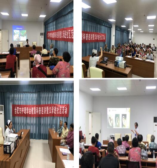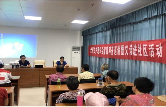 此次科普知识进社区活动之前,护理部活动前经过沟通,组织安排各科主任和护士长进行健康讲座和现场义诊。血管外科主任丁锐讲述了静脉血栓的症状、诊治、预防相关知识。合肥市滨湖医院甲乳外科副主任刘岩岩科普了乳腺癌治疗新进展。合肥市第一人民医院内分泌科副护士长刘媛媛讲述了糖尿病居家管理,加强社区糖尿病患者自我管理意识。合肥市第一人民医院心血管科副护士长刘蕾蕾科普了高血患者居家自我管理,解决社区居民高血压患者自我监管难题。合肥市滨湖医院中医科护士长郑国华讲座:中医护理耳穴压豆相关知识,居民颇感兴趣,现场气氛活跃。最后血管外科、甲乳外科、 中医护理、慢病护理、小儿护理专家进行了现场义诊,现场活动气氛活跃。