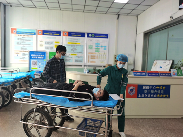 今年9月,合肥市第一人民医院正式通过国家级“急性上消化道出血急诊救治快速通道”创建的网审,获得现场核查资格,自接到现场评审细则起,医院在促进日常工作进一步推进的同时,积极准备现场核查。为迎接本次创建检查,做好场景演习,提高医护人员对患者发生上消化道出血的应急处理能力,同时提高各岗位联动效率,加强患者的安全管理,为医疗安全提供保障,11月6日, 市一院在急诊部举行“急性上消化道出血快速通道” 急诊救治场景演练,此次演练由医务部组织,急诊部实施,多学科参与,模拟自行来院的危险性上消化道出血患者在P站