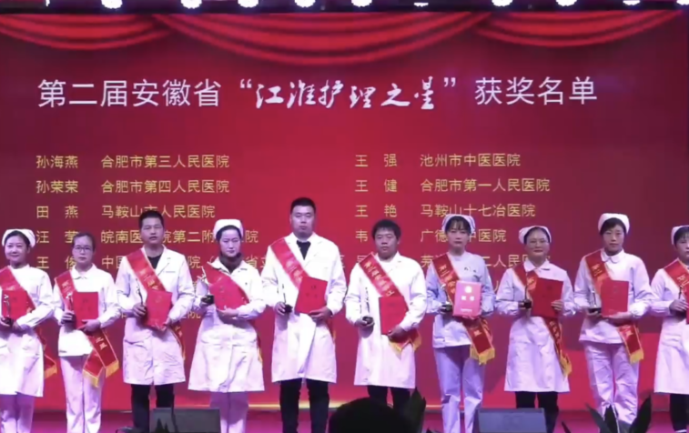 月12日,由安徽省健康服务业协会、安徽省护理学会、安徽省医学会健康管理学分会主办的安徽省第二届“江淮护理之星”颁奖盛典在阜阳举行。合肥市第一人民医院重症医学科护士王健荣获“江淮护理之星”称号。