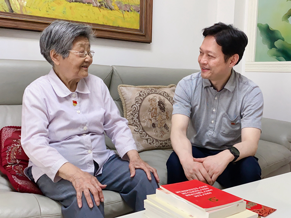 吴冬雷书记为姜老带去《中国共产党简史》等学习书籍,与老人促膝长谈,了解老人的身体健康状况,向她转达院党委的关心和问候,并详细介绍了医院近期的发展情况,倾听她对医院发展的意见建议。