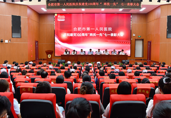 月30日下午,在党的百年华诞前夕,合肥市第一人民医院隆重召开了庆祝建党100周年暨“两优一先”七一表彰大会。院领导班子全体成员、受表彰的“两优一先”个人和集体、各党总支书记、各党支部班子成员及中层党员干部参加大会。大会由院长、党委副书记唐智国主持。