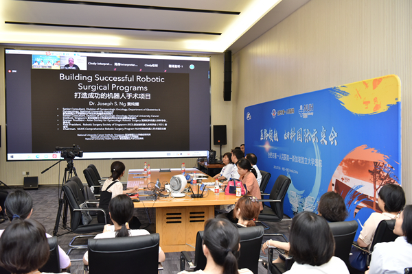 长唐智国分别代表院方致辞并介绍医院基本情况。新加坡国立大学医院妇产科、癌症研究所(NCIS)妇科肿瘤科高级顾问医生黄纯耀教授带来《打造成功的机器人手术项目》主题讲座,系统介绍机器人手术程序以及如何使患者受益。合肥市第一人民医院妇科主任刘慧敏、滨湖院区妇科主任金红就妇科肿瘤的机器人手术治疗与黄纯耀教授进行线上互动交流,畅谈学术前沿和临床应用。