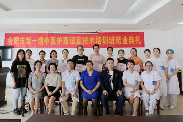 由合肥市中医护理适宜技术培训基地举办的合肥市第一期培训班结业典礼于9月17日下午在合肥市第一人民医院滨湖院区护士培训中心圆满完成。市一院副院长于卫华、合肥市卫健委中医处尚成凌、市一院中医科主任唐晓敏、滨湖院区护理部执行主任何蕾和本次培训班代教老师以及来自肥东、肥西、巢湖、庐江、长丰的十名学员参加结业典礼。会议由护理部副主任魏道琳主持。合肥市卫健委中医处尚成凌对本次培训班的圆满结业表示热烈祝贺!于卫华副院长在讲话中对本次培训班的举办表示肯定,第一批学员顺利结业,这是中医护理适宜技术培训基地发展的起点,她希望大家能够将所学的知识带回各自医院,带回基层。更好的将其应用于临床,服务患者,服务社会。为健康中国的建设添砖加瓦!