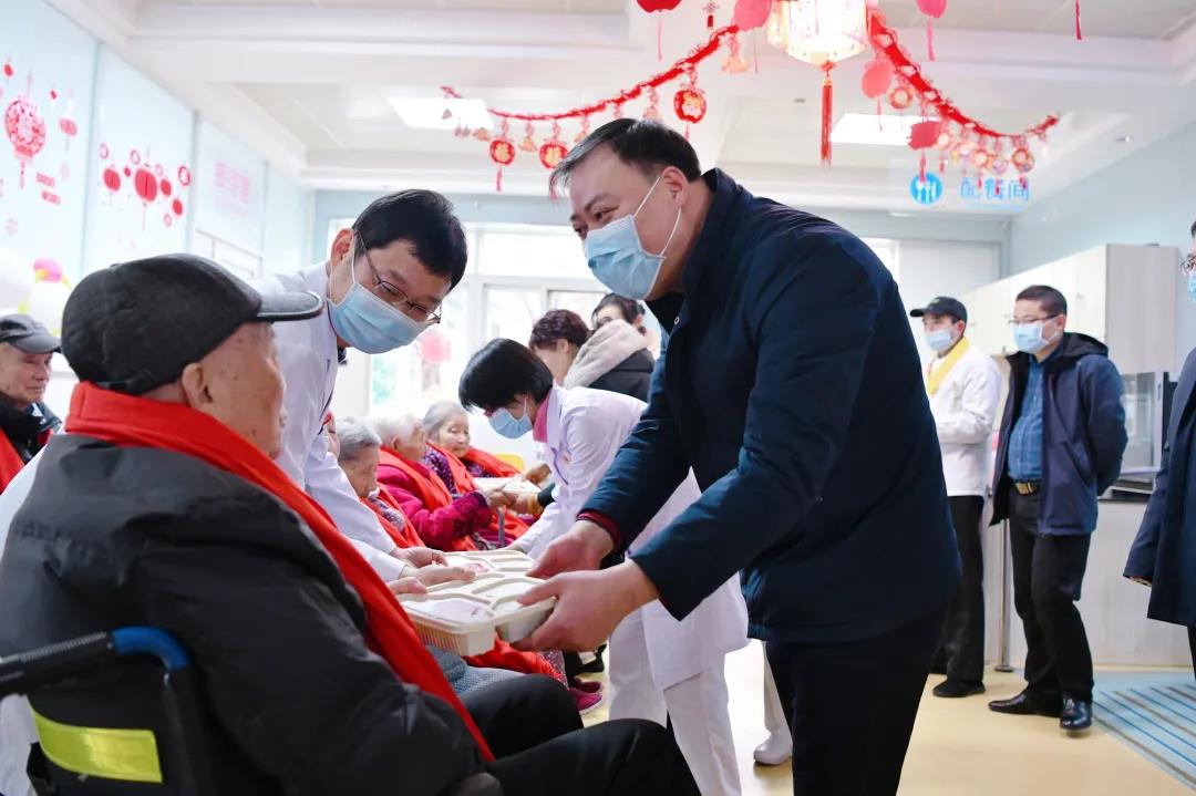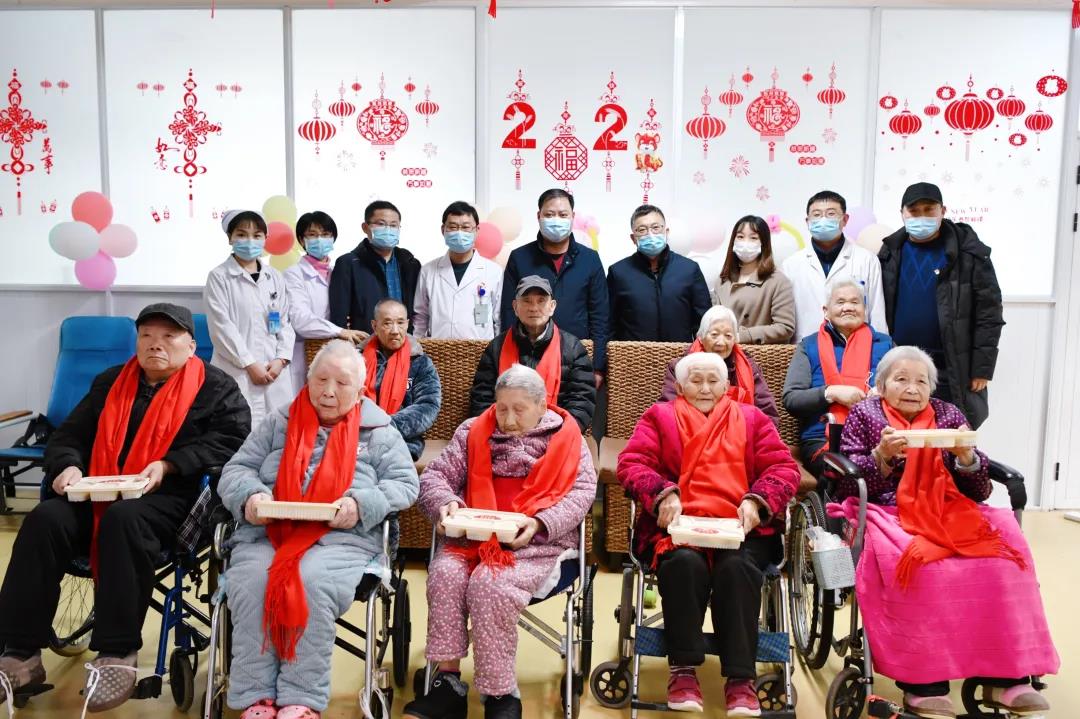 为老人送上红围巾和年夜饭