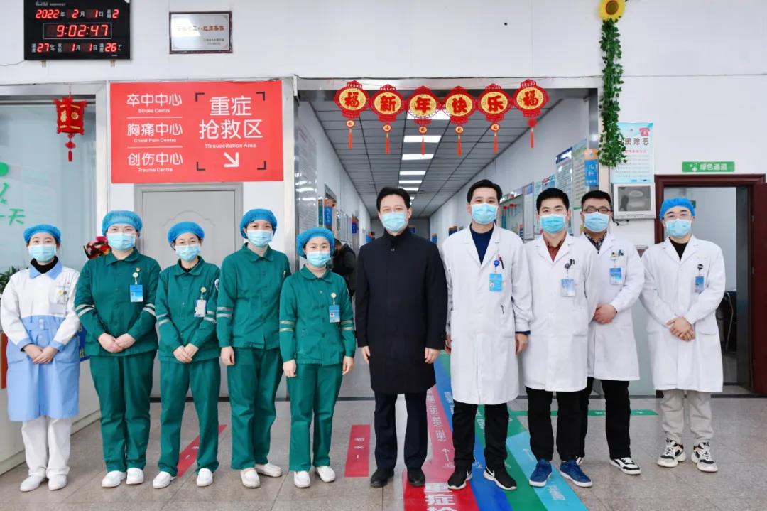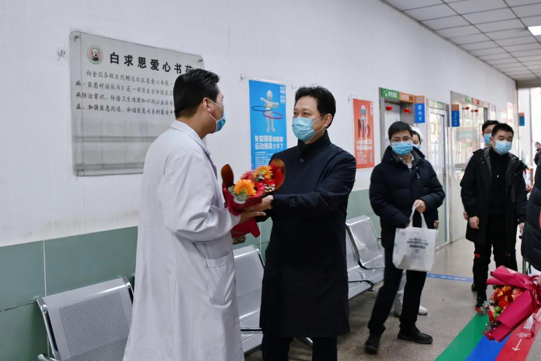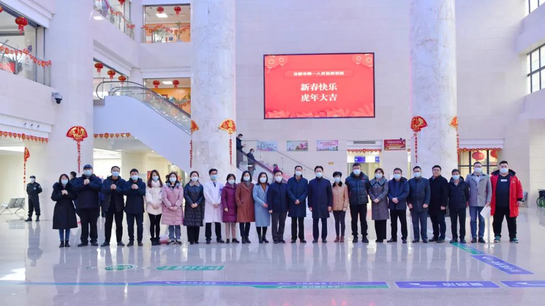 虎年送健康、新春迎吉祥。2月1日是农历大年初一,合肥市第一人民医院全体院领导深入各科室和病区,看望、慰问坚守在一线工作岗位的医院职工,给大家送上鲜花和巧克力,也送上新春祝福和节日问候。