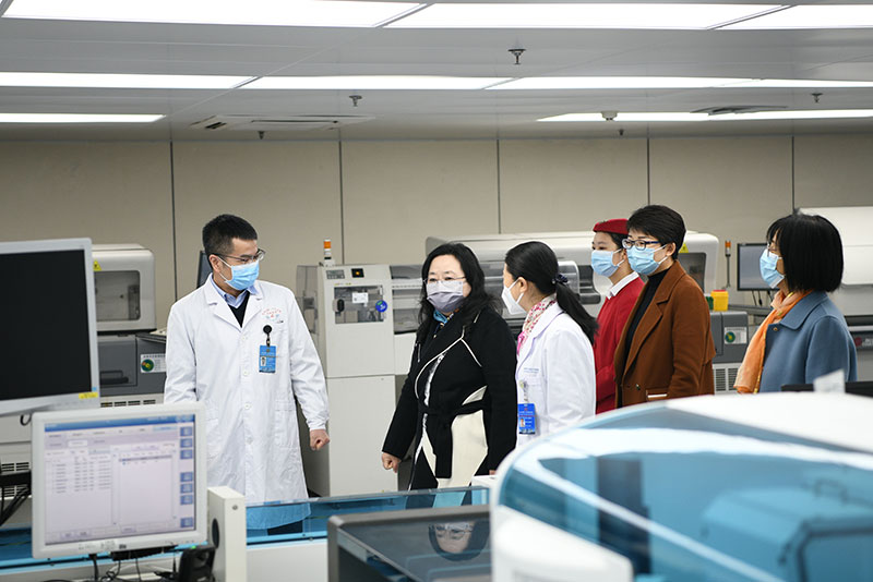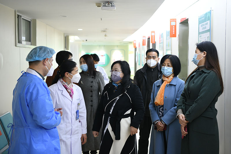 吴丽芳会长一行实地参观了眼视光中心、检验中心、退役军人门诊、体检中心、影像中心、儿保中心、医养结合病房、产科病房、儿科病房等,潘爱红副院长及医院相关科室负责人陪同参观,大家对滨湖院区温馨的就医环境、专业的医护团队、精准细致的服务给予了充分的肯定,吴丽芳会长还亲切的询问了P站 “医养结合病房” 的运行模式和服务内涵。