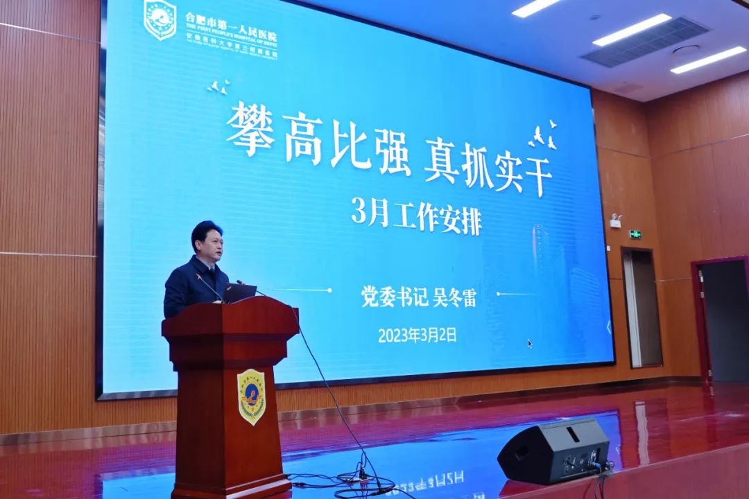 党委书记吴冬雷围绕“斗争精神”讲党课,对当前医院发展形势进行了战略分析,强调要有忧患意识、市场意识、运营意识、服务意识、质量意识、品牌意识、平台意识、协同意识、融合意识、创新意识、廉政意识和斗争意识。对于3月份工作,围绕两会召开、业务提升、国考、三级医院评审、学科建设、基础建设、舆情安全、平安医院等提出七项关注和20项具体工作。