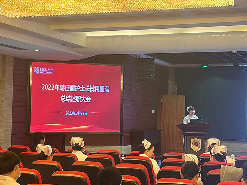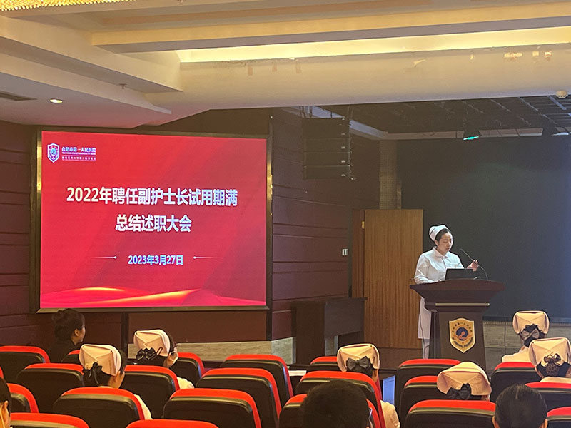 3月27日下午,P站 召开副护士长试用期满总结述职大会,对履职满一年的19位副护士长进行转正考核,党办副主任王兰主持会议。潘爱红副院长,护理部副主任、科护士长、有关科室科主任、护士长参加了会议。