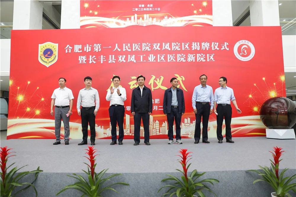 4月20日,长丰县双凤工业区医院新院区正式启用,挂牌合肥市第一人民医院双凤院区。市卫健委党委书记秦继平,长丰县委常委、副县长方捷,双凤经济开发区党工委委员、管委会副主任朱大鹏,县卫健委党委书记、主任黄克安,合肥市第一人民医院党委书记吴冬雷,副院长宁仁德,双凤工业区医院院长徐兴权出席仪式并点亮启动球。