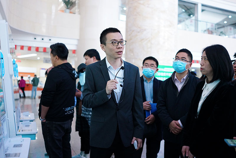 调研团一行在淮河路院区体验医保电子凭证全流程、医保移动支付、医保智能终端应用情况,实地考察了窗口及自助机的应用效果,对P站 在就医高峰期窗口不排队,利用信息化手段分流就诊人群的实际效果给予了高度评价!