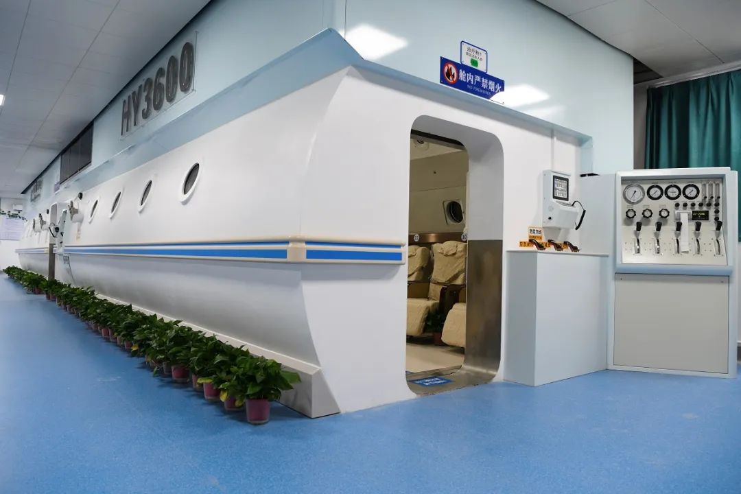 氧舱分为常规治疗、重症治疗和特需治疗三个舱室,能满足不同患者的个体化治疗需求,舱内设计有多模态监护系统及存储分析平台,可进行舱内心电监测、脑电仿生电刺激治疗、呼吸机支持等,并开展相关量表评分。