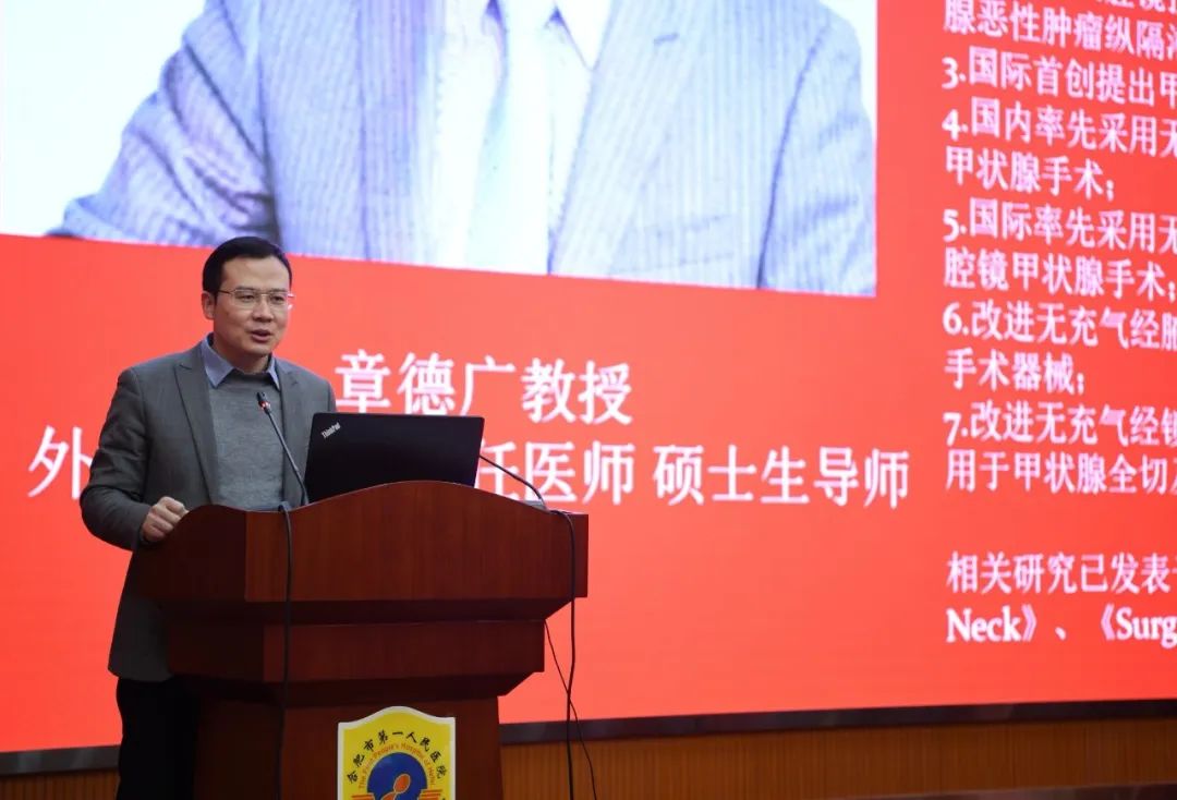 作为学界享有盛誉的专家,章德广教授长期致力于微创腔镜甲状腺手术研究,创建了无充气腔镜甲状腺手术体系,包括一体化手术器械平台研发、手术操作空间建立及手术操作流程系列改进和创新,在国内获得广泛认可和推广。