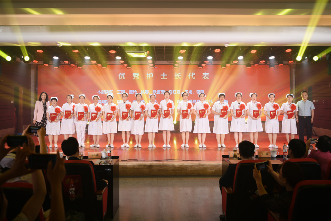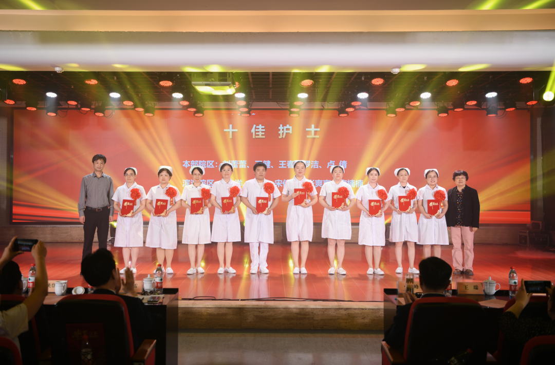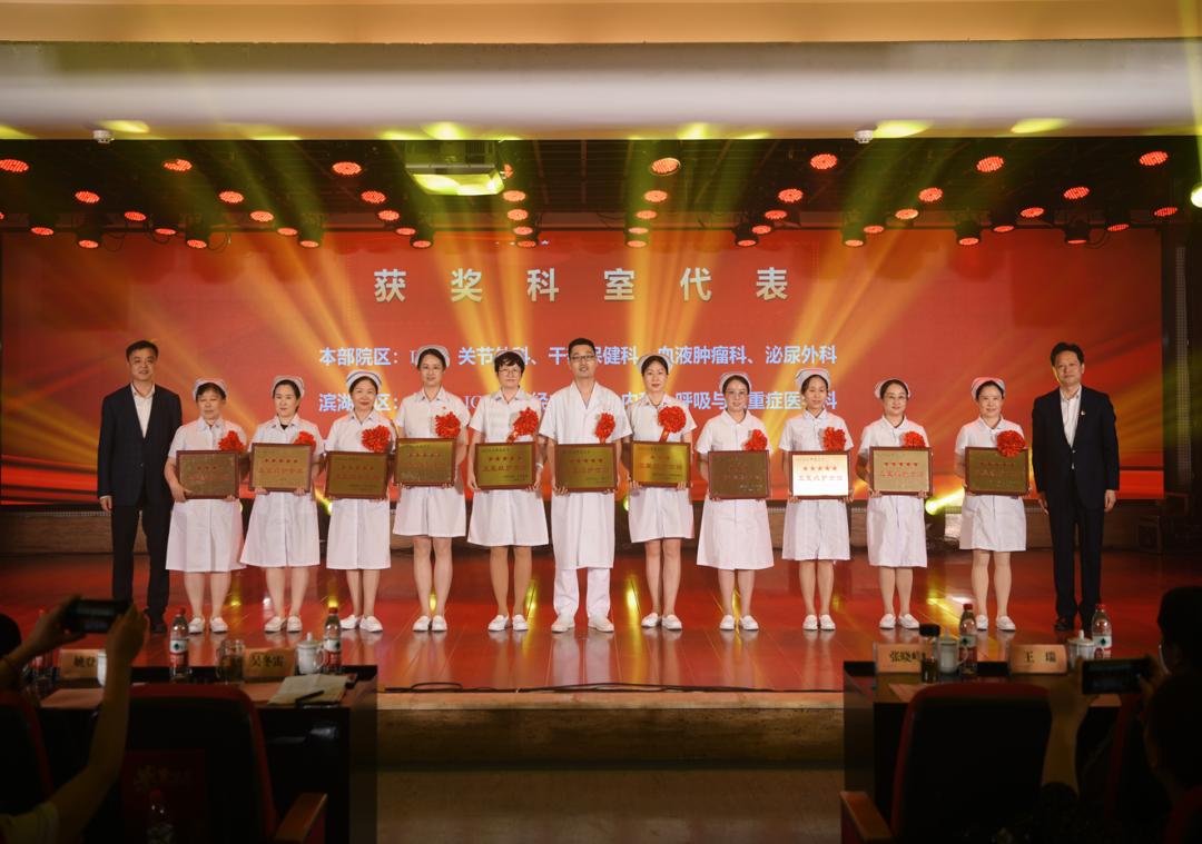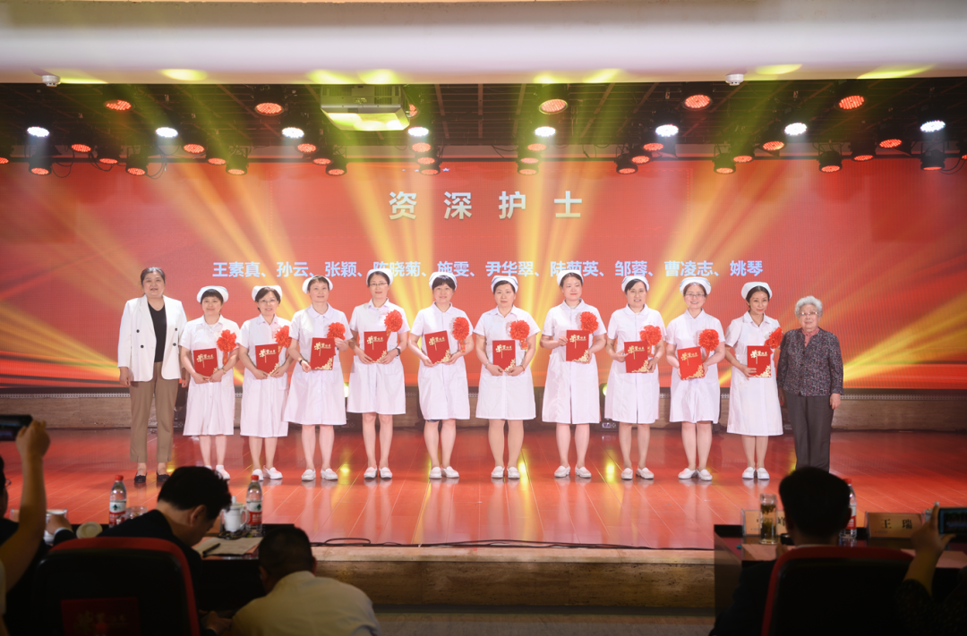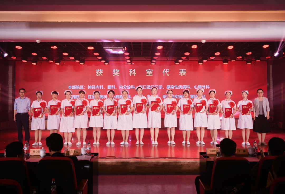 “丹心一片如天使,白衣高杰蕴深情”。护士以严谨的工作态度、精湛的护理技术、规范的病房管理、孜孜不倦的言传身教,彰显了白衣天使“敬佑生命、救死扶伤”的崇高职业风范,他们通过团结协作,保障了患者安全,推动了护理事业的高质量发展。纪念大会表彰了2023年度的护理先进集体和先进个人,共评选出先进集体奖74个,奖项包括优质护理先进科室、安全优胜科室、带教优胜科室、病房管理优胜科室等六项;先进个人奖132个,奖项包括十佳护士、护理技术标兵、护理服务标兵、护理创新标兵、优秀专科护士、优秀护士长等八项。到会领导为先进集体及先进个人代表上台颁奖,并对30年和40年工龄护士颁发奖状并合影留念,现场获奖的护士们脸上纷纷洋溢着喜悦和自豪。